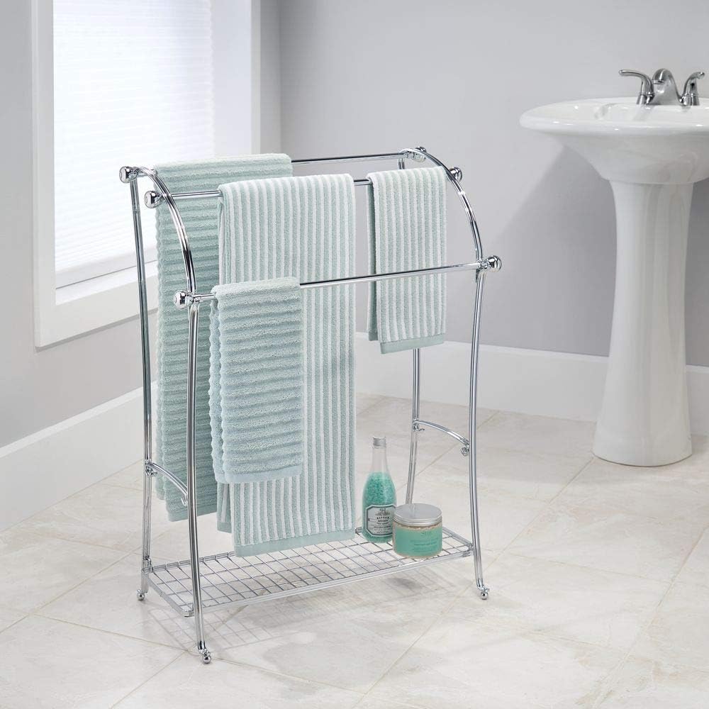 Con un design semplice ed elegante in cui nessun tipo di fiore o decorazione. Nella lista seguente troverai diverse varianti di portasciugamani da terra e recensioni lasciate dalle persone che lo hanno acquistato le varianti sono disposte per popolarità dal più popolare a quello meno popolare. Piantana da bagno portasciugamani salviette accappatoio appendiabiti terra cromo. Ha 3 lunghi bracci che possono tranquillamente ospitare fino a 6 salviette.